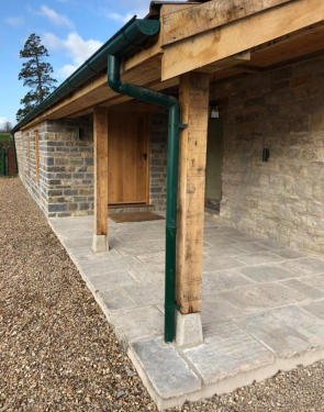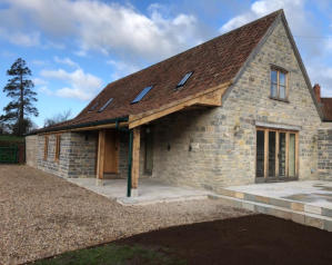 Single storey extension using natural stone and oak, complete with patio and natural stone wall.
