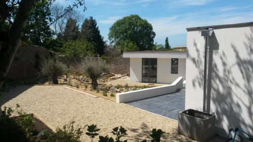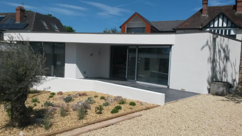 New build house in Wells. Single storey build. Sedum roof with PV panels. This project won Mendip District Councils Building Excellence Award for Best Individual Home 2016.